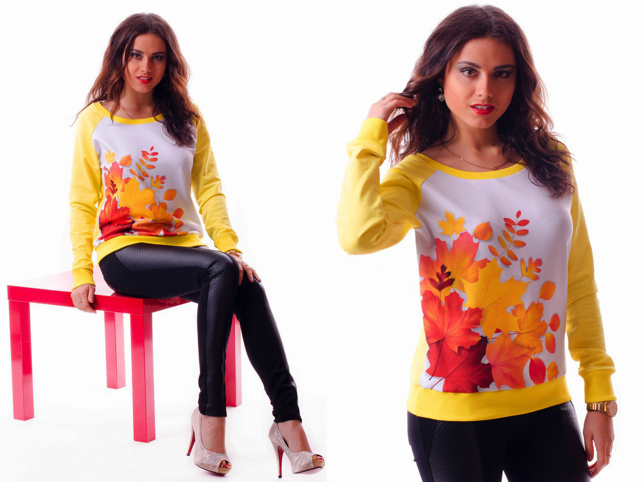 Яркий комбинированный свитшот из плотной турецкой ткани двухнитка+ манжеты на рукавах и горловина из ткани рибана(благодаря этой ткани манжеты сохраняют форму,не растягиваются),передняя часть с печатью из ткани стрейч.