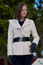 В комплект пальто входит черный текстильный пояс на резиновой основе с металлической застежкой.